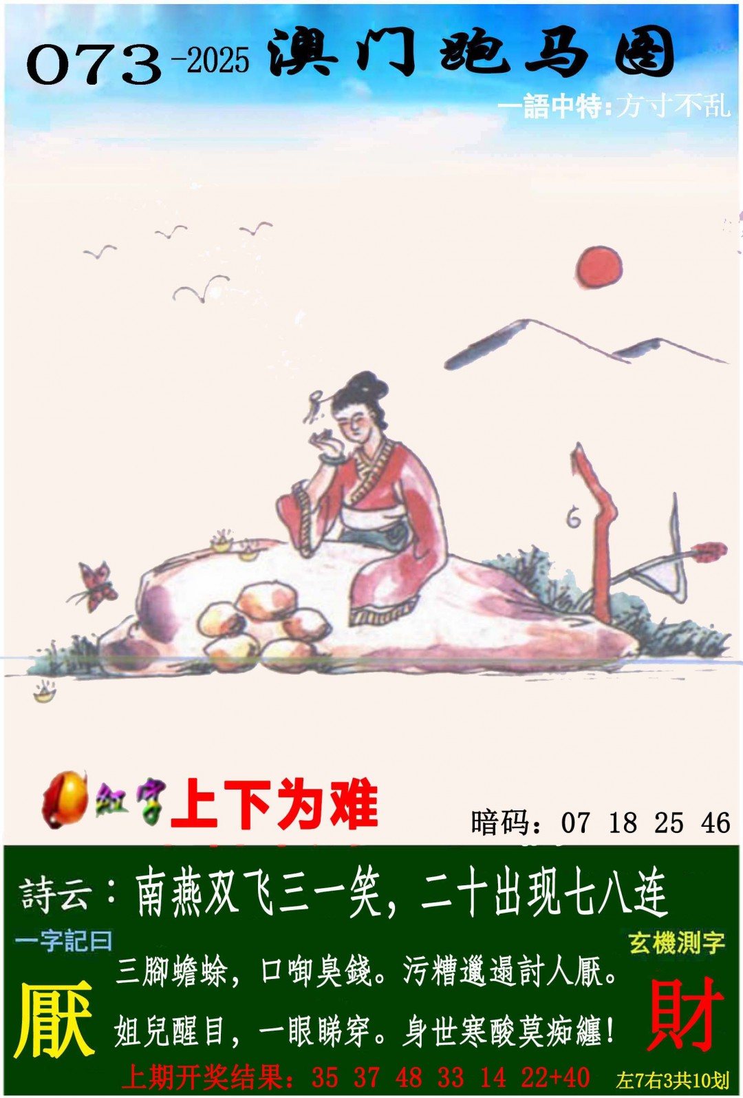 | 073期二码 | 07.09 | 开:?00 |